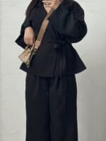 ست کت و شلوار مشکی استین عروسکی کد 300